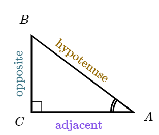 Figure6.3.10.From the perspective of angle \(A\text{,}\) all sides of a right triangle can be labeled.